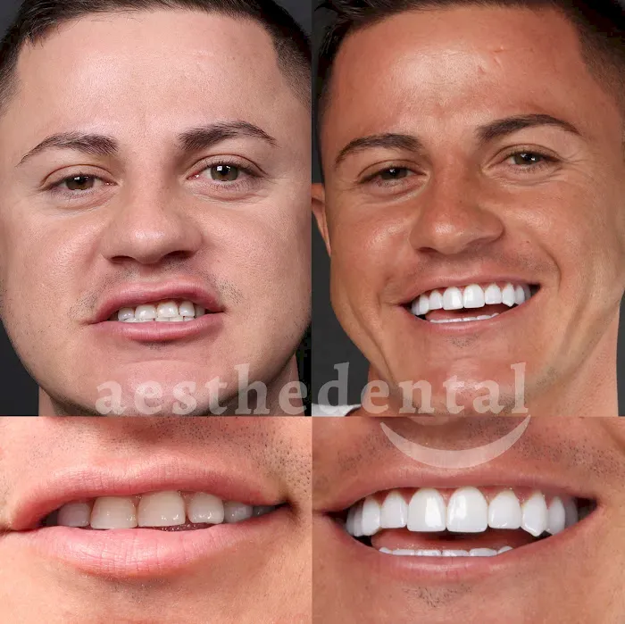В AestheDental программа Hollywood Smile выполняется по индивидуальному цифровому протоколу и включает комплекс процедур: установку виниров, циркониевых или E-max-коронок, профессиональное отбеливание, коррекцию десневого контура. До начала лечения врачи клиники проводят цифровое моделирование, позволяющее пациенту увидеть 3D-визуализацию будущей улыбки и согласовать форму, цвет и пропорции.