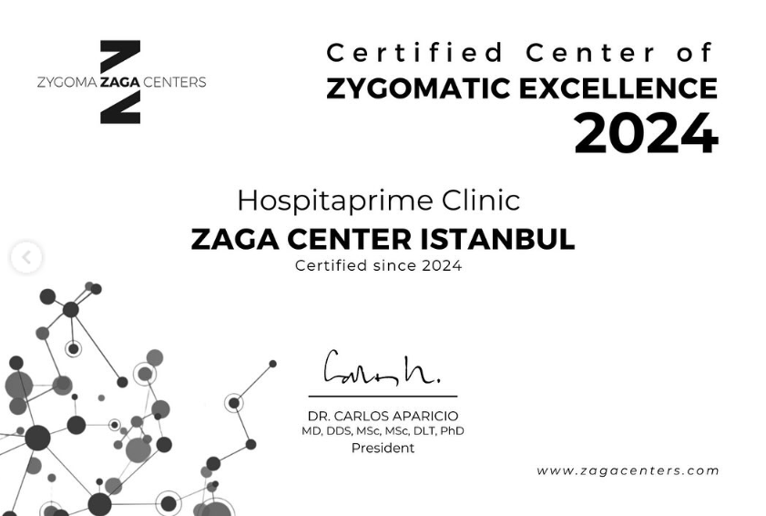 Методы лечения, близкие к искусству, привели к тому, что Hospitaprime стал первым и единственным сертифицированным ZAGA Центром в Стамбуле в 2024 году. Наша клиника была признана официальным сертифицированным ZAGA Центром Стамбул, что подтверждает высокий уровень качества и профессионализма наших стоматологических услуг.