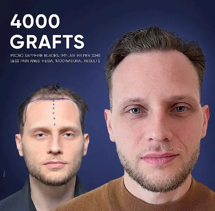For comparison, with a similar level of service and technology, the cost of a hair transplant in the UK can reach up to €8,000. As a result, choosing Turkey often allows patients to save around 50% while still receiving high-quality treatment and full medical support.